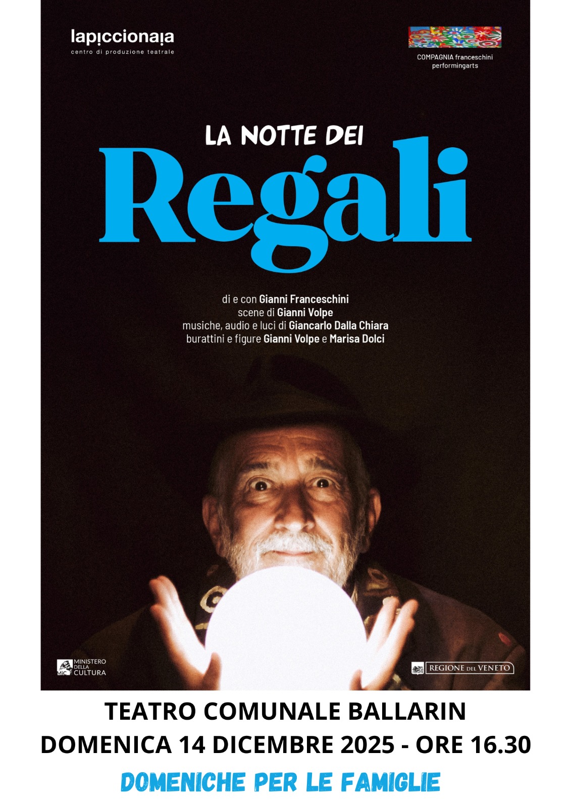 Racconta la sua esperienza “centennale” a fianco dei portatori di regali nell’inverno di ogni anno rivivendola e condividendola con i piccoli spettatori.